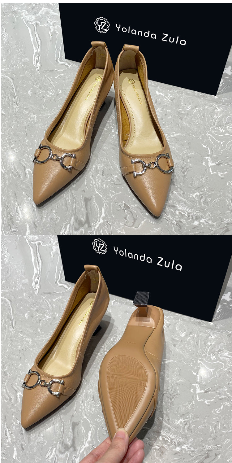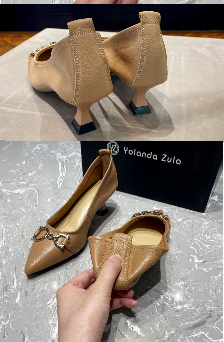 Pointed mid heel soft leather shoes