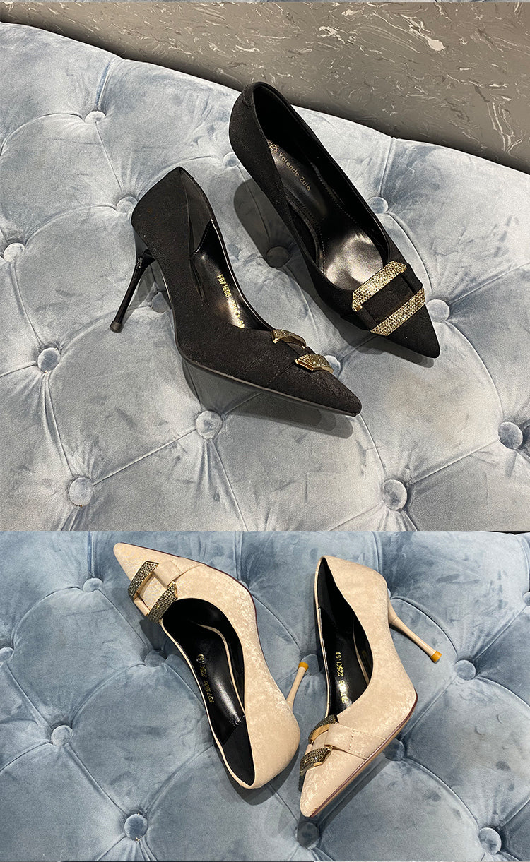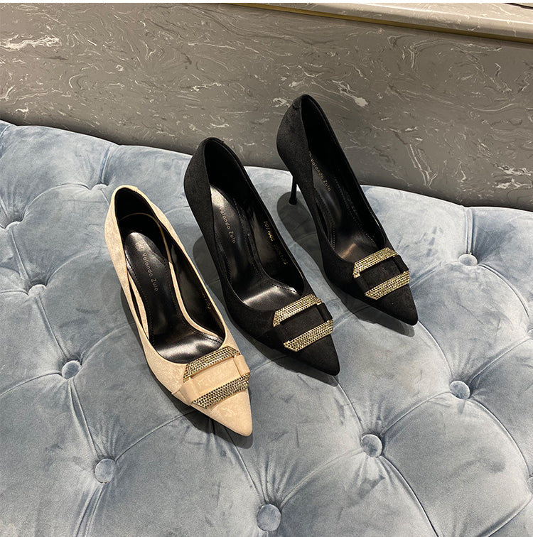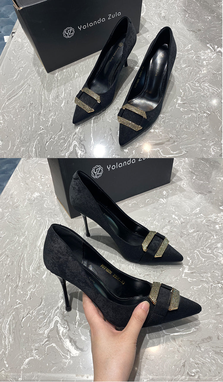 Pointed suede high heels